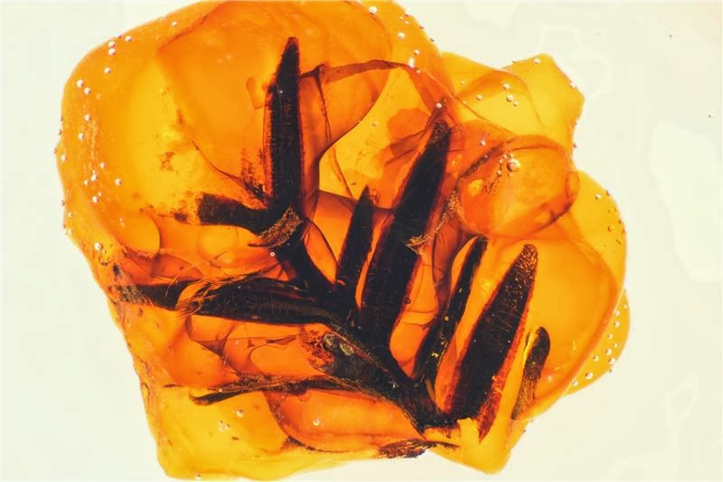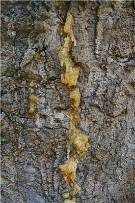 Modern resins were also used for the study: Here fresh resin, the raw material for amber, is oozing out of the trunk of an Araucaria tree (Araucaria cunninghamii) in Adelaide Botanical Garden, Australia.