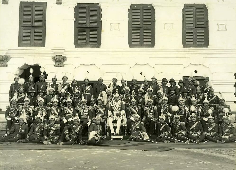 | Delhi Durbar of 1903 A.D. Maharajah Chandra (second from right) with rulers of Princely States |