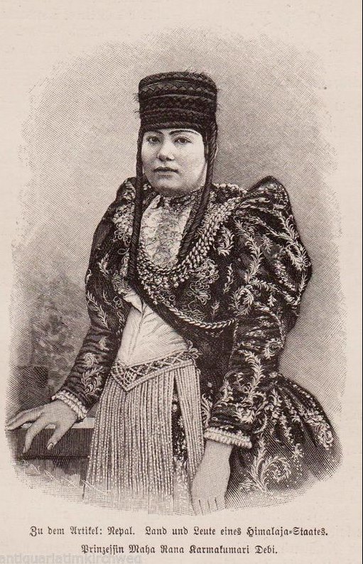 There is a universal truism about the good being the first to go. Nepal in the 1880’s was still a backward place in terms of medical care and there were any number of diseases that swiftly brought about the one inescapable fate – death. Karma Kumari passed away in her early twenties in 1886 A.D. leaving behind two young sons. Dev soon remarried and his second wife Krishna Kumari was the daughter of King Surendra Bir Bikram Shah, the king of Nepal from his youngest wife Maharani Punya Kumari Devi, the daughter of General Krishna Bahadur Ranaji, Dev’ adoptive father. Life has got a habit of coming full circle! Karma Kumari would not know the joy of being the Maharani after Dev was crowned the Maharajah of Kaski and Lamjung and Prime Minister in 1901 A.D. nor would she know the heartache of witnessing her husband removed from power after just three months of rule!