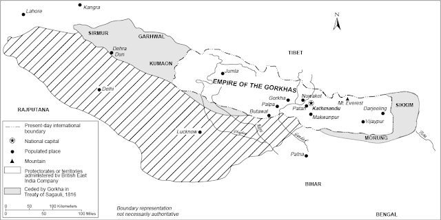 Ever since the ink had not even dried on the Treaty of Sugauli the Nepalese Court had zealous proponents of a second war with the British to salvage Gorkhali pride and retrieve lost territories. Nepalese politics since then would play out along the lines of pro or anti Company sentiments as expediency dictated. Only with the rise of Jung Bahadur Rana and his personal intervention on behalf of the British during the Indian Mutiny of 1857 A.D. did Nepal firmly establish itself as a friend of British India.