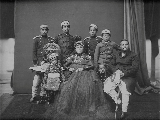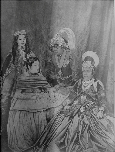 | Maharajah Jung Bahadur with his two daughters married to Crown Prince Trailokya |