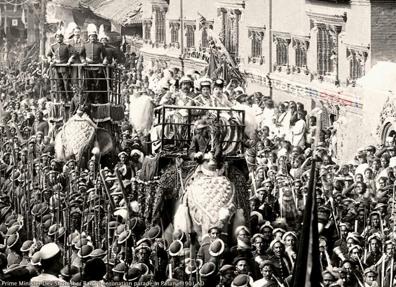 What is less known today is the Coronation ceremonies for the Rana prime ministers of Nepal who inherited together with the high post the title of Maharajah of Kaski and Lamjung. Thus they orchestrated grand “Sindoor Jatra” or Vermilion Festival and went around Kathmandu city in triumphal procession on elaborately caparisoned tusker elephants and accepted tribute from cheering crowds. Denizens of Kathmandu like a “ramita” or a show and irrespective of political leanings everybody has fun whether cheering a Shah king or a Rana maharajah, an elected politician or a recalcitrant Maoist. Why not indeed as a Jatra is a Jatra and merrymaking is in our genes!