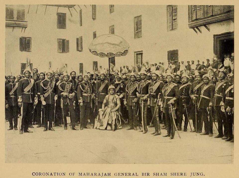 | The first Maharajah of the Shumsher clan Bir Shumsher during investiture ceremony |