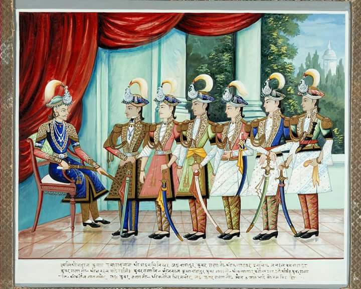 Mathabar Singh Thapa’s elder sister was the Regent Queen of Nepal Lalit Tripura Sundari, now deceased, and his younger sister Ganesh Kumari Devi was married to Kaji Bal Narsingh Kunwar. The Kunwars were closely associated with the Shah monarchy from the time of unification of Nepal. Bal Narsingh had risen in prominence after the assassination of ex-king Rana Bahadur Shah by his half-brother Sher Bahadur Shah. It was Bal who had killed the assailant. Their son Bir Narsingh Kunwar was a Captain in the army and attached to Crown Prince Surendra. Mathabar had changed his favourite nephew’s name to “Jung Bahadur” reflecting the time’s martial inclinations. In desperation King Rajendra and Queen Rajya Luxmi would turn to Jung to check the ambition of Mathabar by hatching a plot to assassinate him.