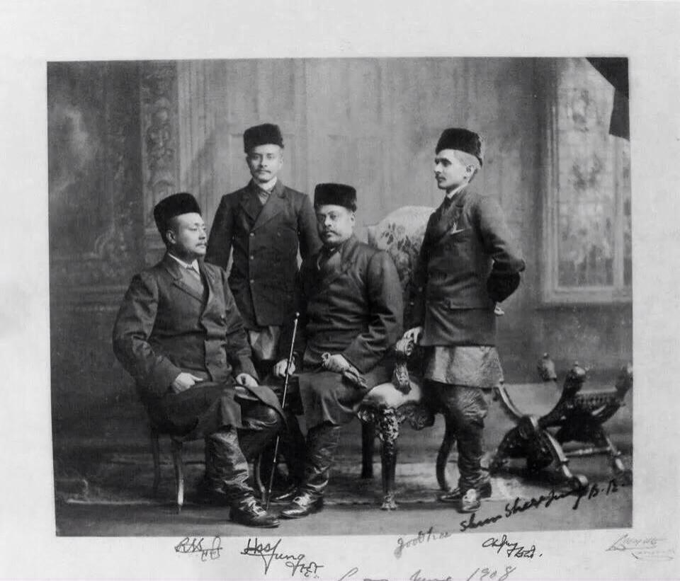 One must start investigating by learning who he really was at birth. One of the youngest sons of Commander-in-Chief Dhir Shumsher Jung Bahadur Rana from his morganatic wife Juhar Kumari reportedly from Kangra, Juddha was not born a Roll-wallah, but was added to the Rana nomenclature at the time of his eldest brother Maharajah Bir Shumsher reportedly by a death-bed wish of his father Dhir. It can be surmised that Bir was only too willing to fulfill his father’s wish as, at the same time, he also raised the status of his children from his second Newari wife to the Roll of Succession to the tile of Maharajah of Kaski and Lamjung and Prime Ministership of Nepal. Nearly of the same age Juddha grew up together with his nephews Rudra, Dharma and Pratap, Bir’s children from his second wife.