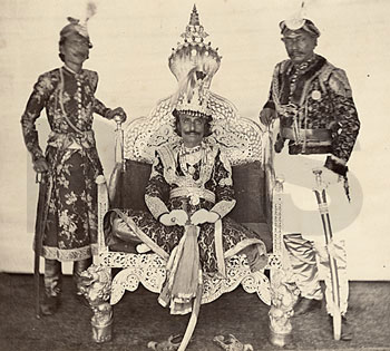 | Maharajah Juddha Shumsher sitting on his coronation throne |