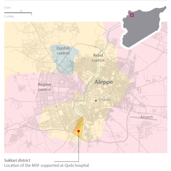 Prior to the Russian intervention, Syrian forces were on the defensive, retreating south from Aleppo and much of Idlib governorate. Soon after Russian aircraft began providing direct air support, the rebels were pushed back into enclaves in and north of the city of Aleppo. It is those enclaves that are now under renewed – and increased – air attacks. The recent attack on the Médecins Sans Frontières hospital in the Sukkari district of Aleppo is symptomatic of the stepped-up air campaign.