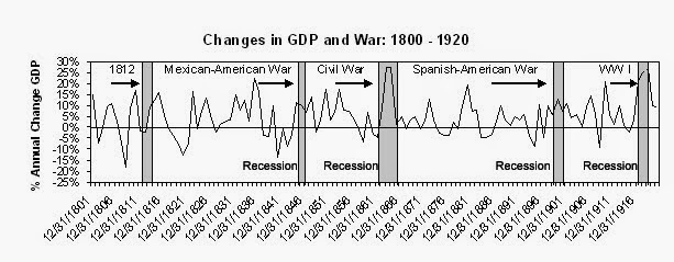 Look at the graphs of GDP during wartime from chapter 19 in Timing the Market.