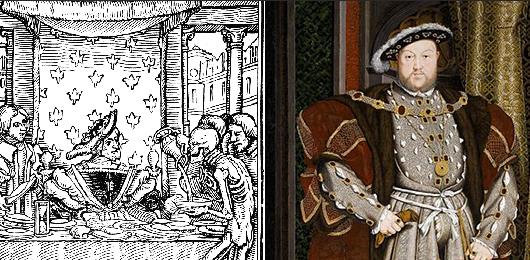Holbein’s satirical depictions of authority figures, such as the King in the Dance Of Death (left), are a far cry from later work such as his iconic portrait of Henry VIII (right).
