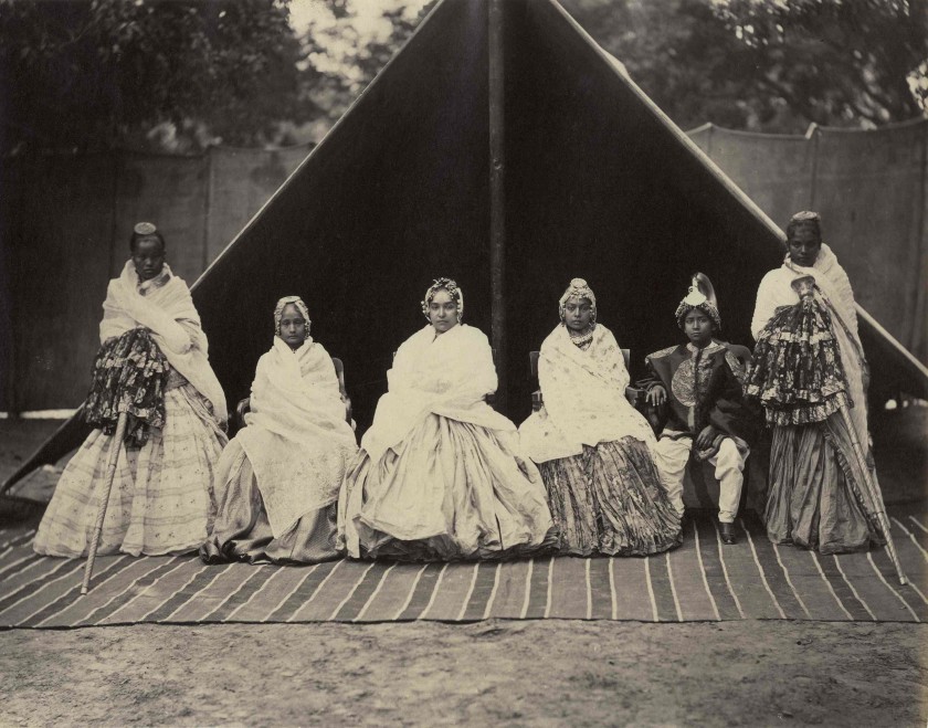 | Jung Bahadur’s Wife with son and daughters in hunting camp by Samuel Bourne |