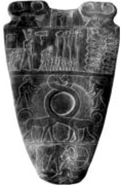 Canaanite ancient Medallion – Snake under what looks like a reptilian creature bigger than the Priest.