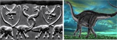 Babylonian Figure shows dinosaur-like paws and snake head.